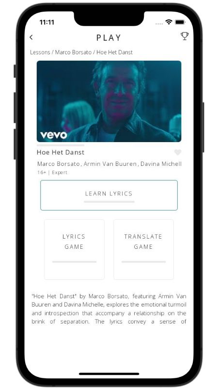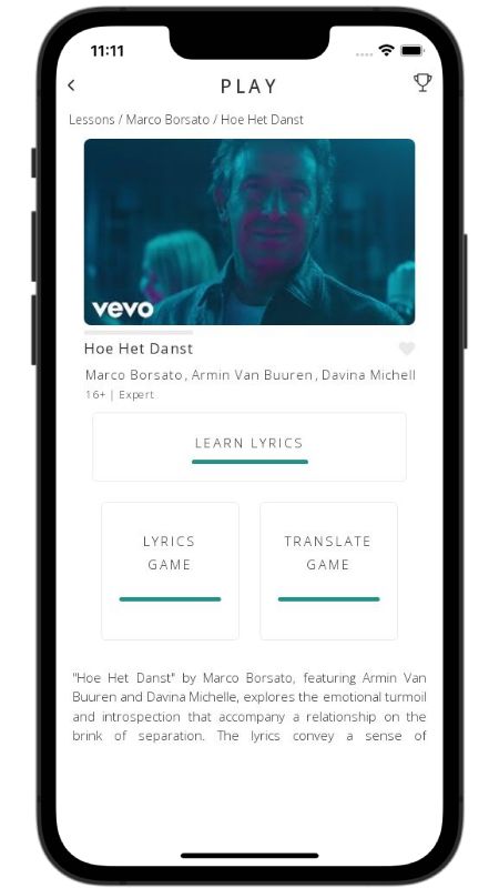 In addition to reading lyric translations, you can now learn Dutch with music and lyrics from your favorite artists.