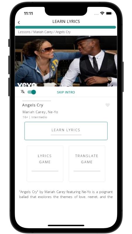 In addition to reading lyric translations, you can now learn English with music and lyrics from your favorite artists.