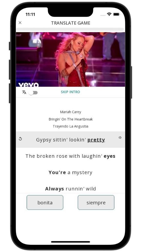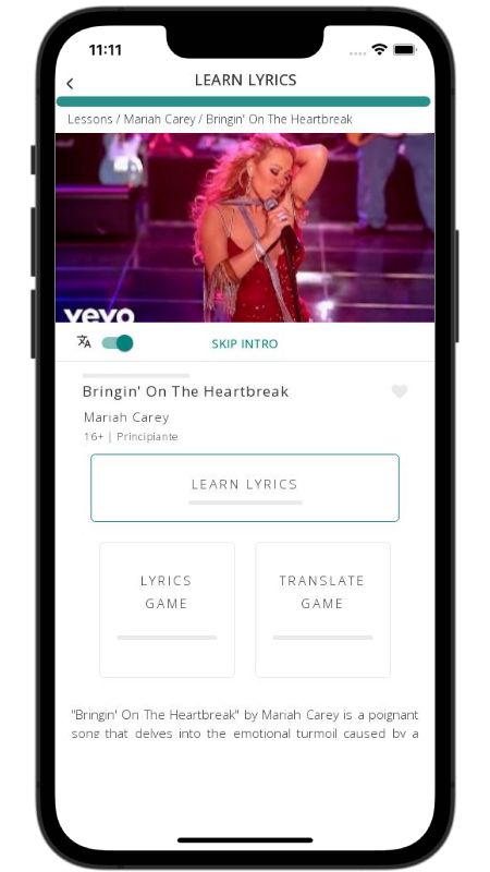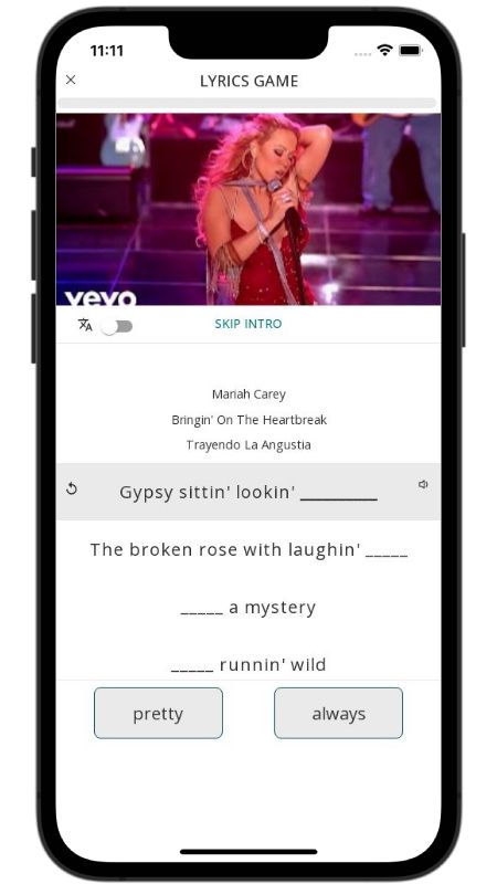 In addition to reading lyric translations, you can now learn English with music and lyrics from your favorite artists.