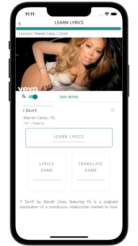 In addition to reading lyric translations, you can now learn English with music and lyrics from your favorite artists.