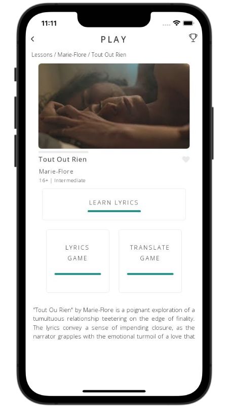 In addition to reading lyric translations, you can now learn French with music and lyrics from your favorite artists.
