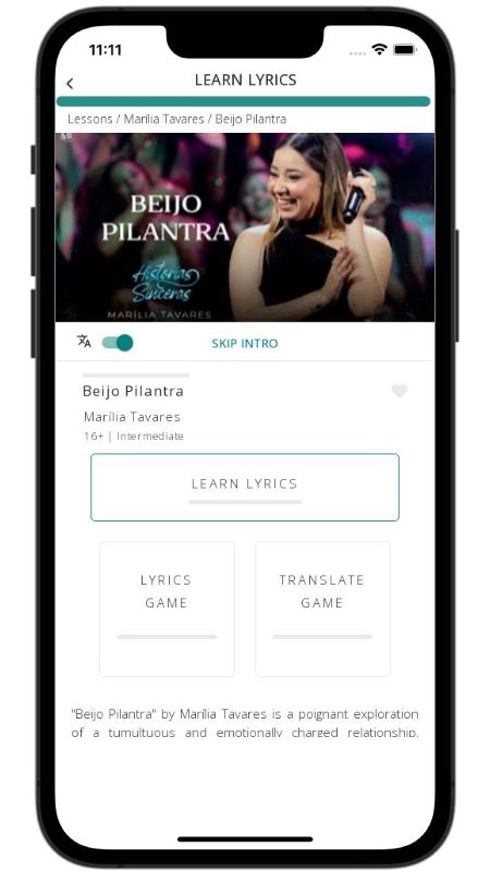 In addition to reading lyric translations, you can now learn Portuguese with music and lyrics from your favorite artists.