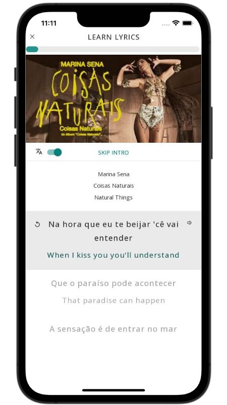 In addition to reading lyric translations, you can now learn Portuguese with music and lyrics from your favorite artists.
