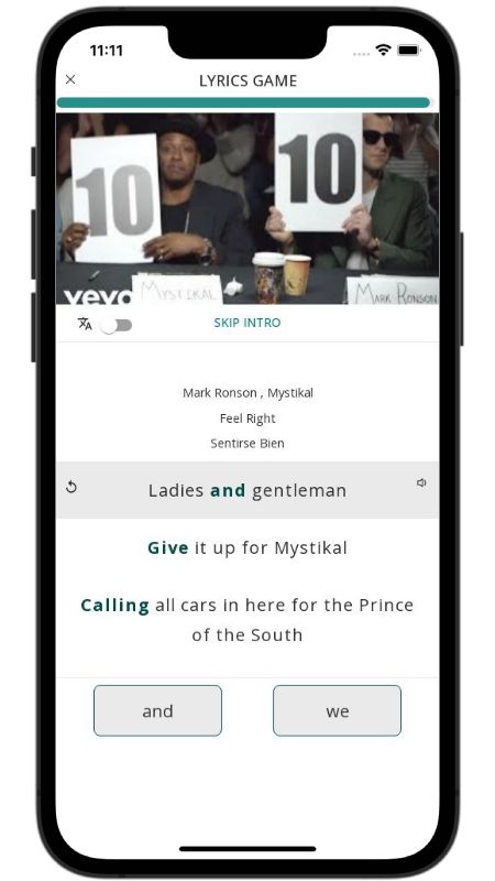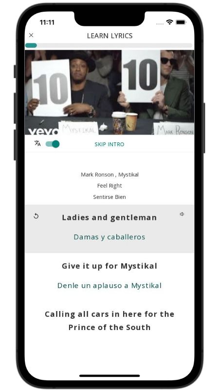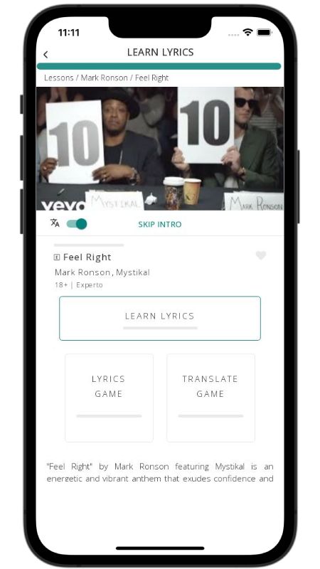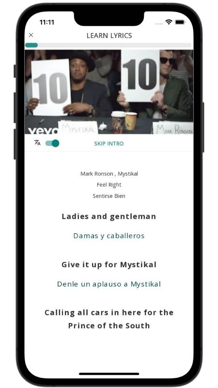In addition to reading lyric translations, you can now learn English with music and lyrics from your favorite artists.