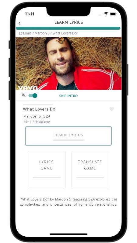 In addition to reading lyric translations, you can now learn English with music and lyrics from your favorite artists.