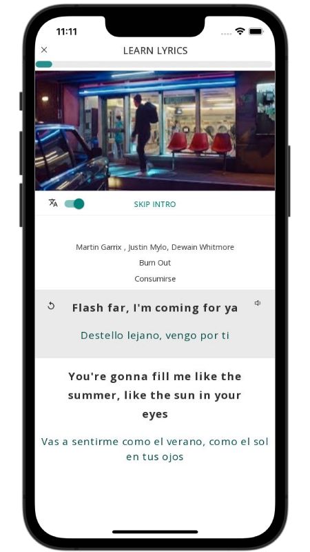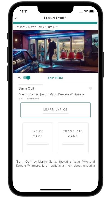 In addition to reading lyric translations, you can now learn English with music and lyrics from your favorite artists.