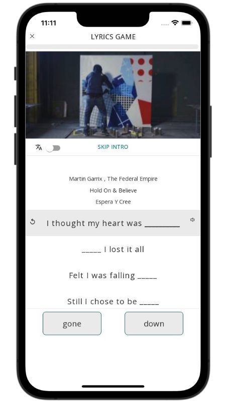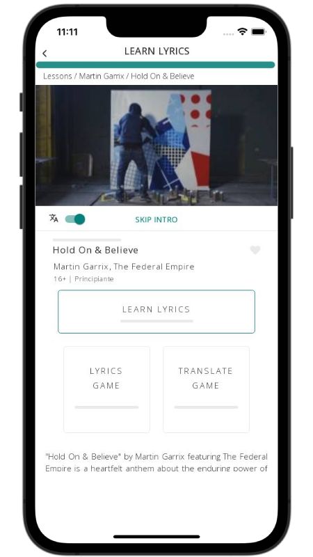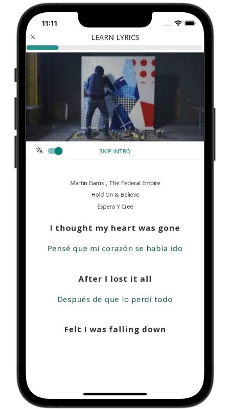 In addition to reading lyric translations, you can now learn English with music and lyrics from your favorite artists.