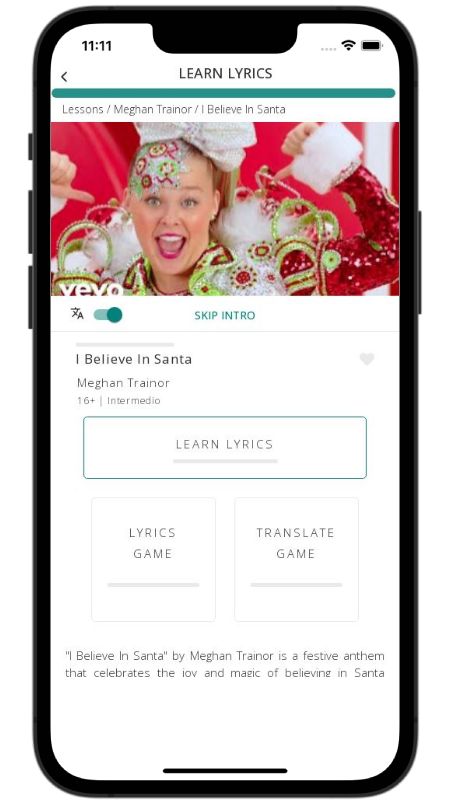 In addition to reading lyric translations, you can now learn English with music and lyrics from your favorite artists.
