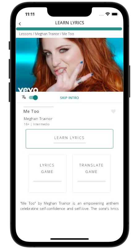 In addition to reading lyric translations, you can now learn English with music and lyrics from your favorite artists.