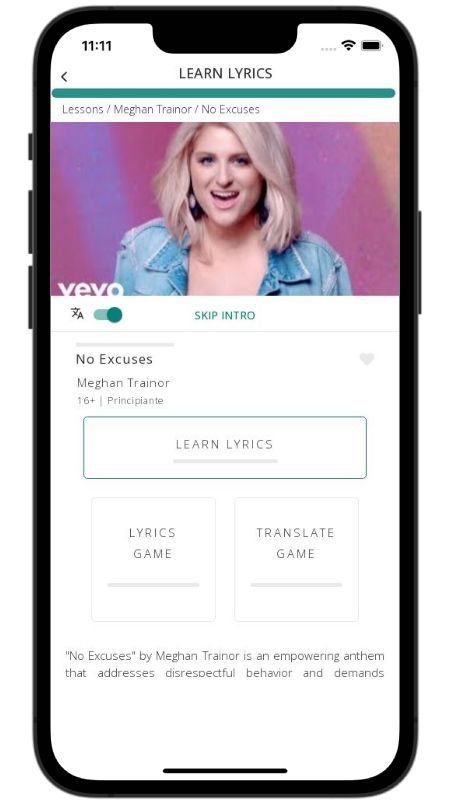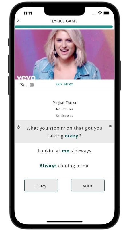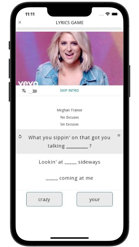 In addition to reading lyric translations, you can now learn English with music and lyrics from your favorite artists.