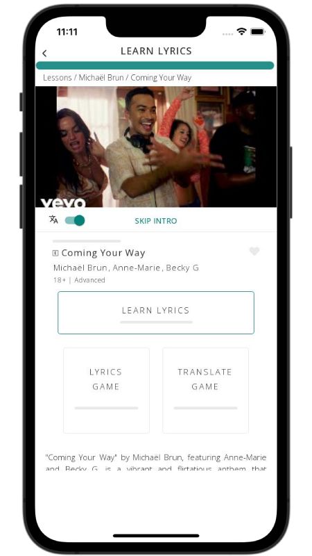 In addition to reading lyric translations, you can now learn English with music and lyrics from your favorite artists.