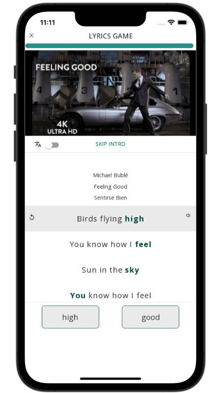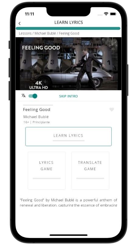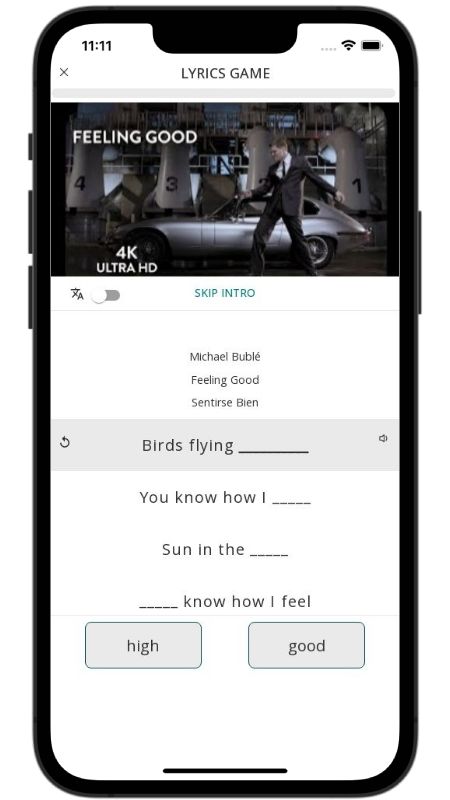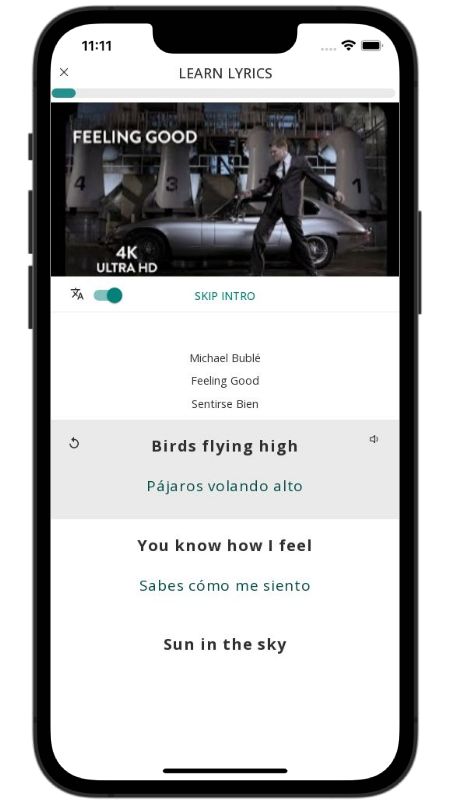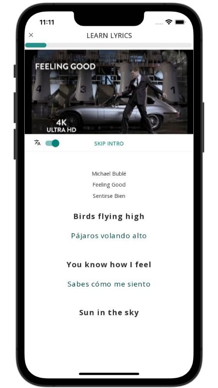 In addition to reading lyric translations, you can now learn English with music and lyrics from your favorite artists.
