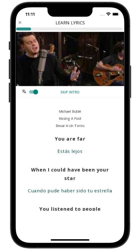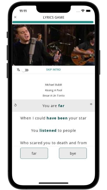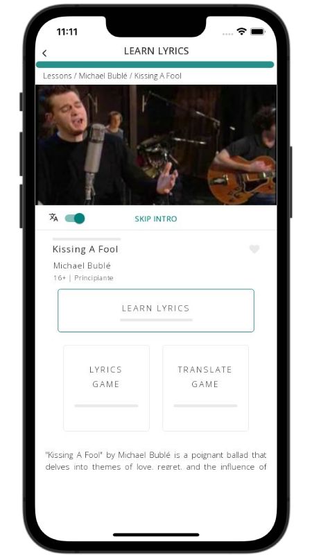 In addition to reading lyric translations, you can now learn English with music and lyrics from your favorite artists.