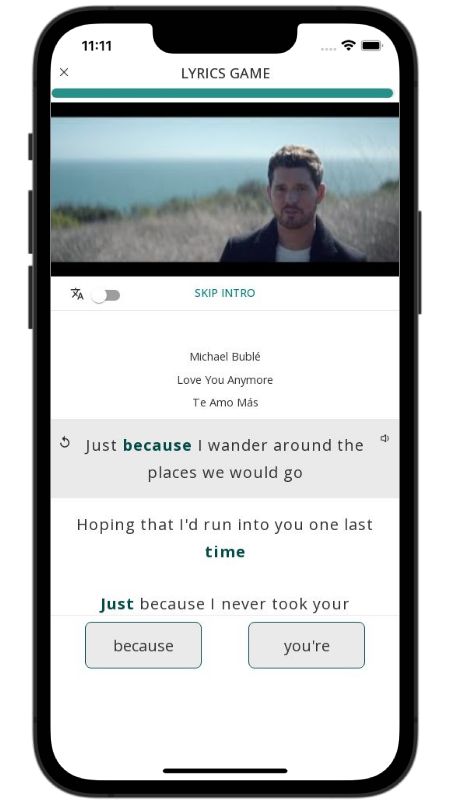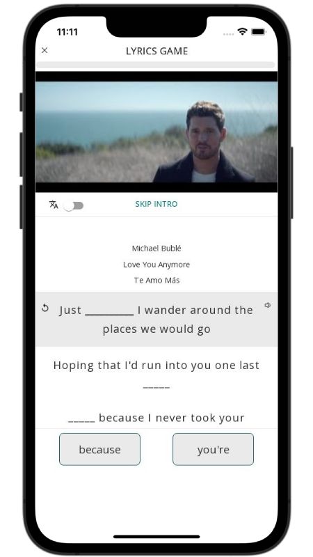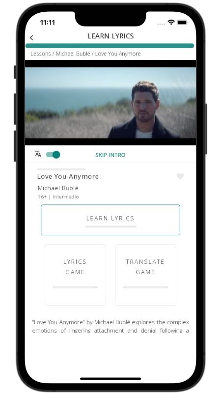 In addition to reading lyric translations, you can now learn English with music and lyrics from your favorite artists.