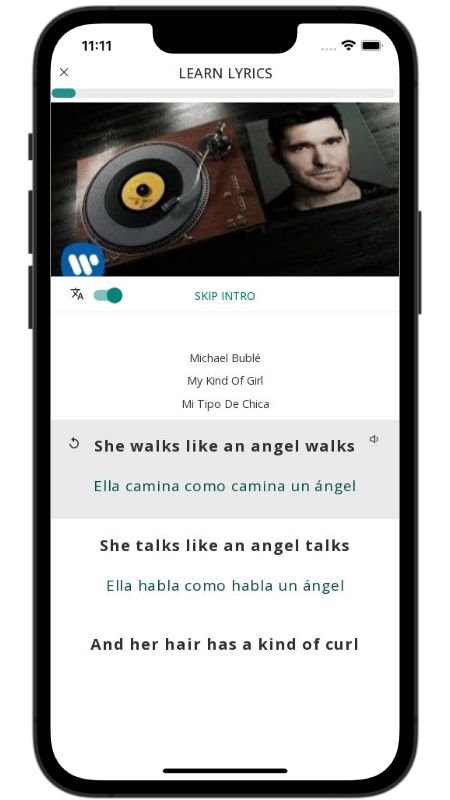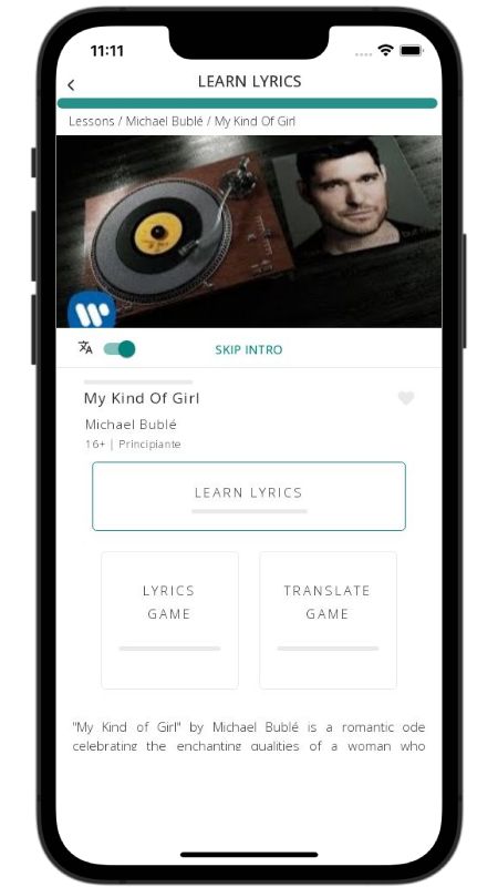 In addition to reading lyric translations, you can now learn English with music and lyrics from your favorite artists.