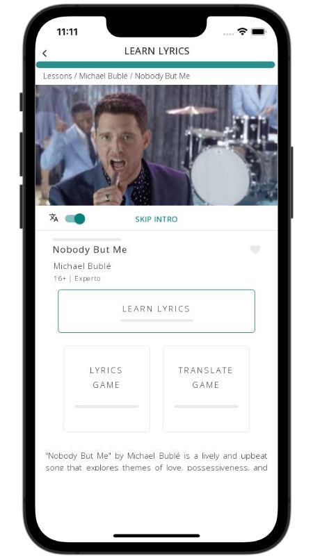 In addition to reading lyric translations, you can now learn English with music and lyrics from your favorite artists.