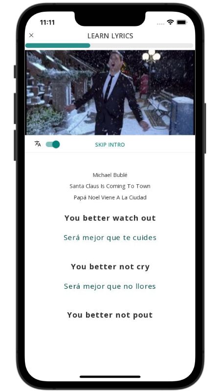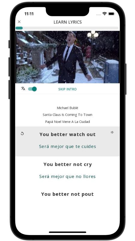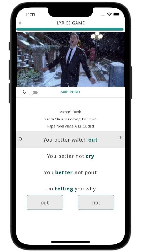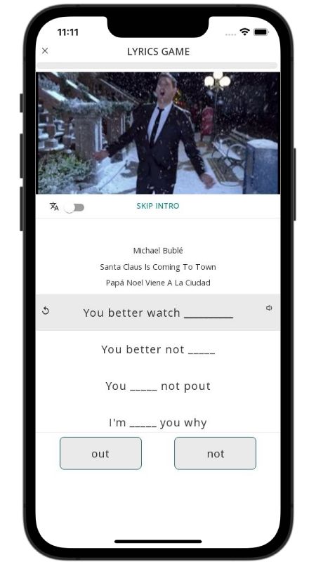 In addition to reading lyric translations, you can now learn English with music and lyrics from your favorite artists.