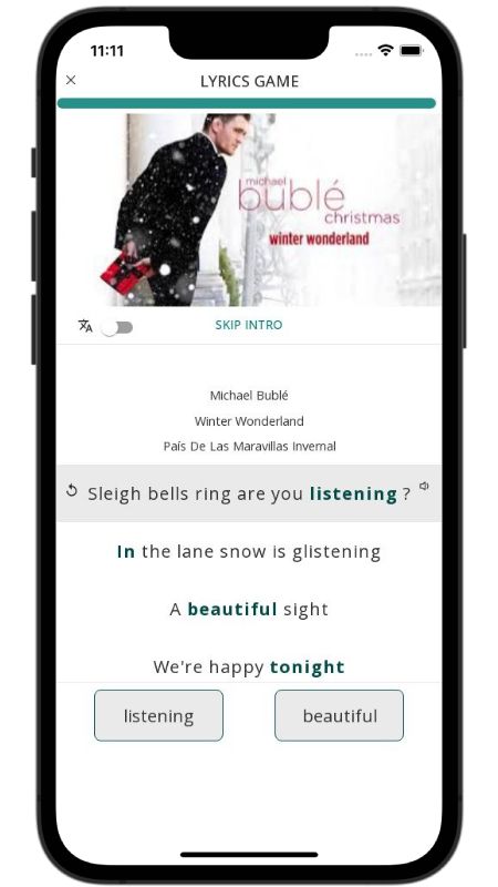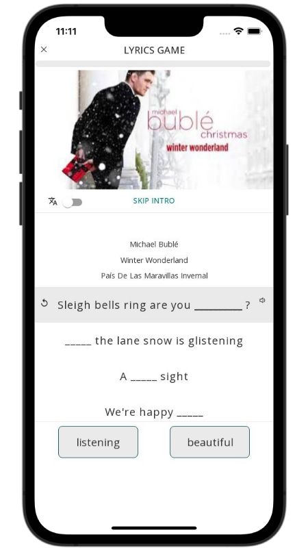 In addition to reading lyric translations, you can now learn English with music and lyrics from your favorite artists.