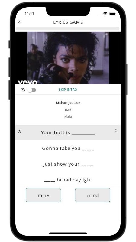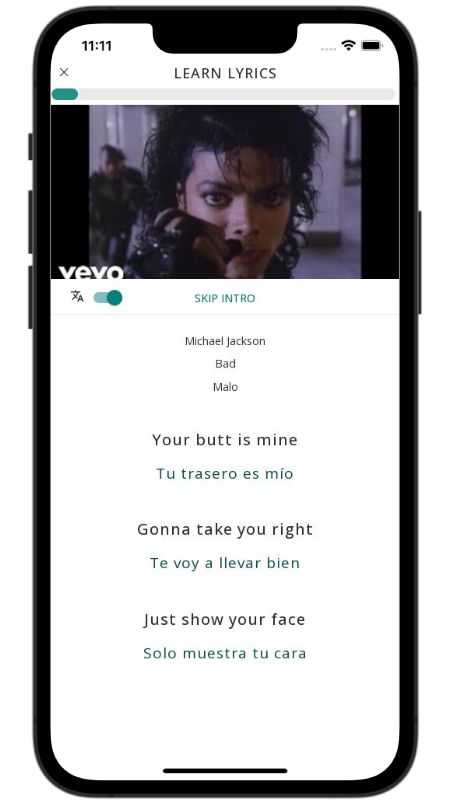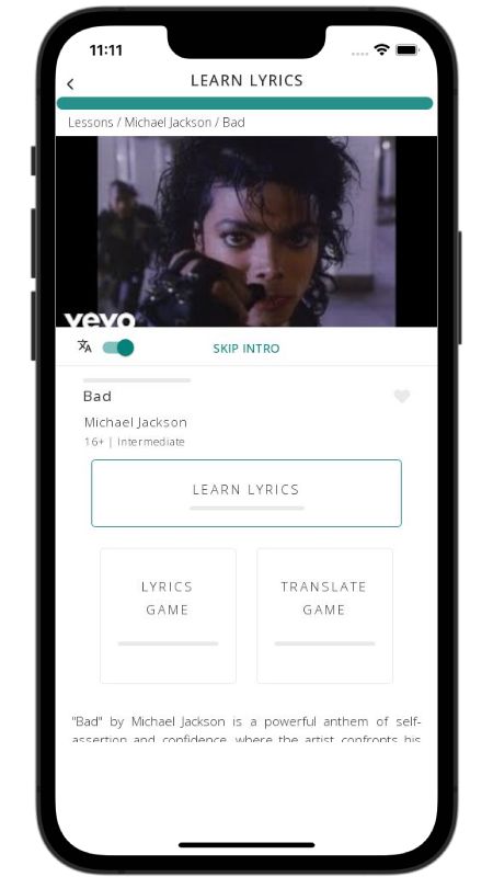 In addition to reading lyric translations, you can now learn English with music and lyrics from your favorite artists.