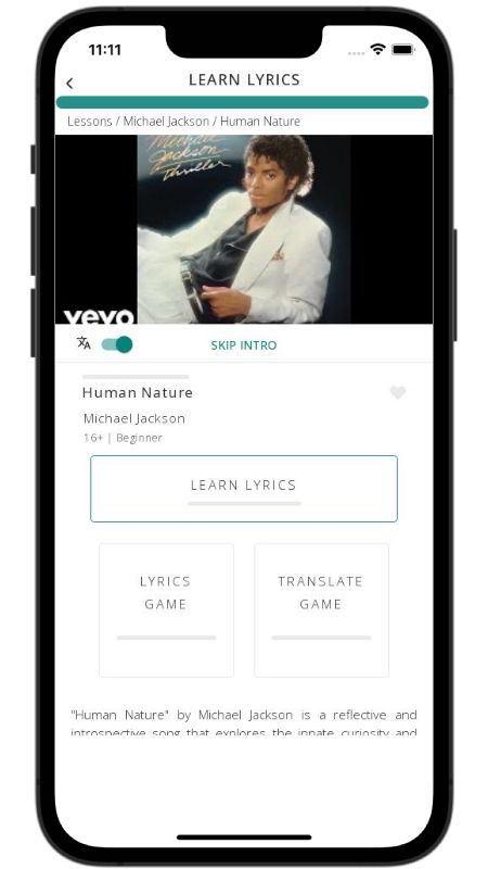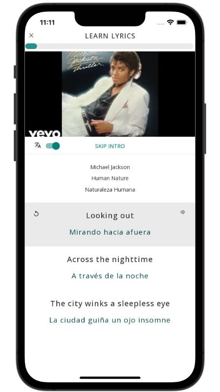 In addition to reading lyric translations, you can now learn English with music and lyrics from your favorite artists.