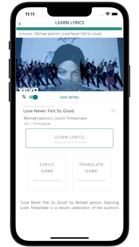 In addition to reading lyric translations, you can now learn English with music and lyrics from your favorite artists.