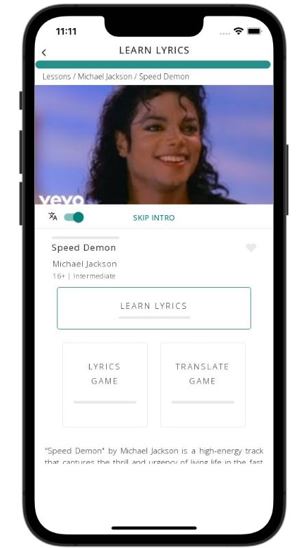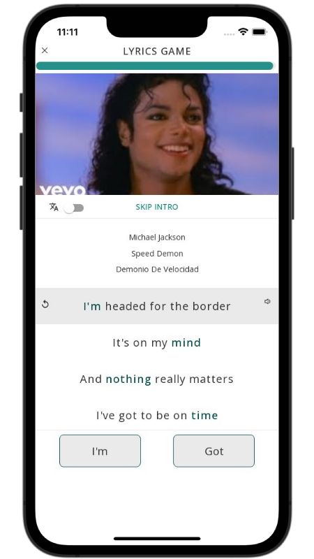 In addition to reading lyric translations, you can now learn English with music and lyrics from your favorite artists.
