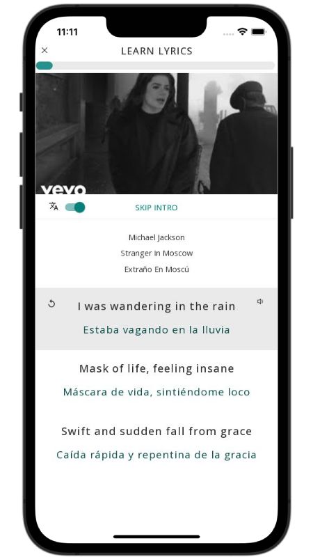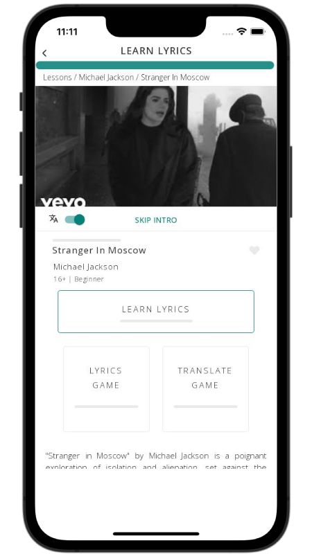 In addition to reading lyric translations, you can now learn English with music and lyrics from your favorite artists.