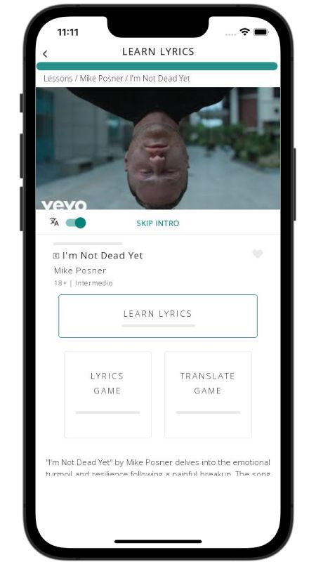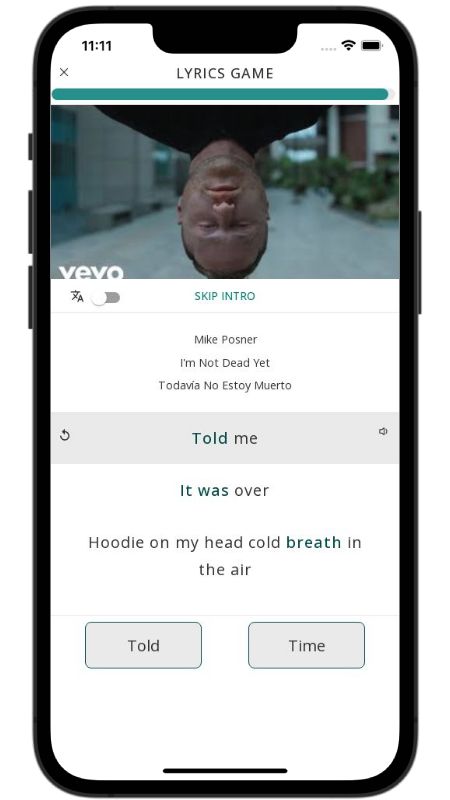 In addition to reading lyric translations, you can now learn English with music and lyrics from your favorite artists.