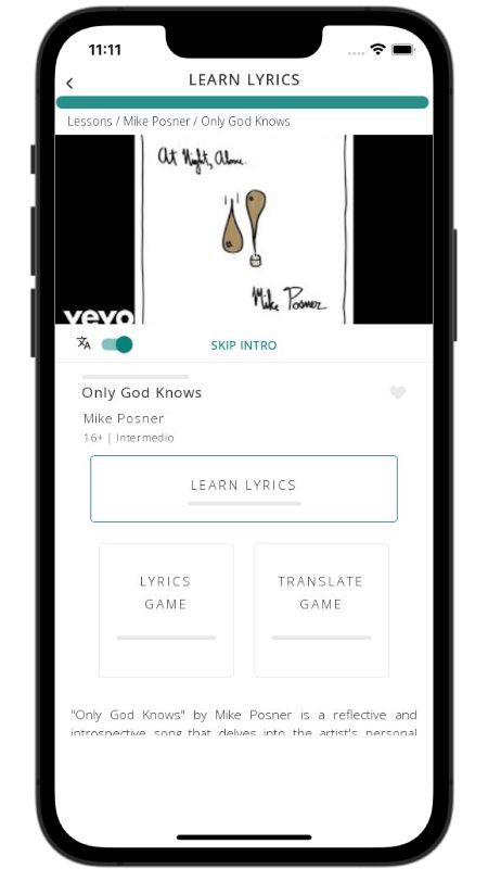 In addition to reading lyric translations, you can now learn English with music and lyrics from your favorite artists.