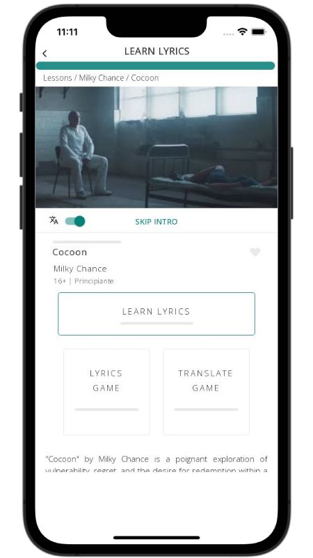 In addition to reading lyric translations, you can now learn English with music and lyrics from your favorite artists.
