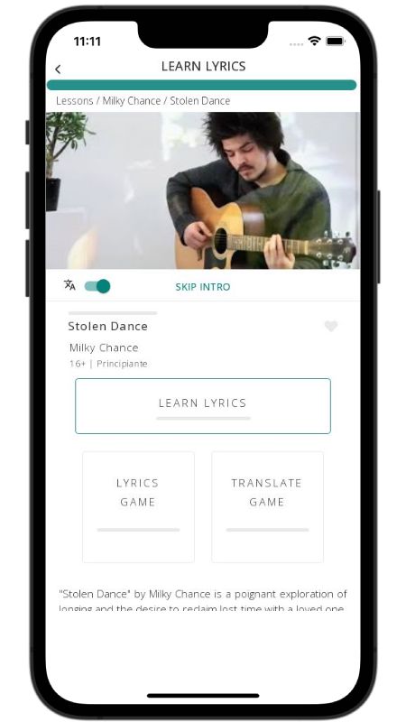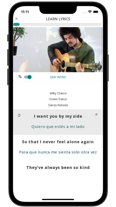 In addition to reading lyric translations, you can now learn English with music and lyrics from your favorite artists.