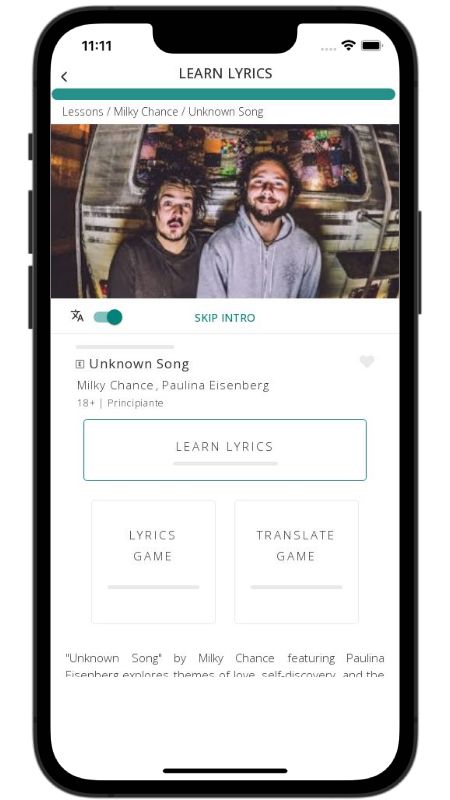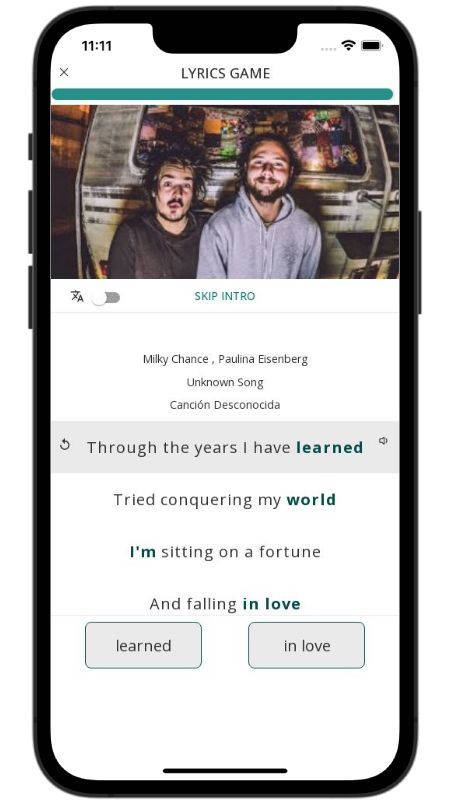 In addition to reading lyric translations, you can now learn English with music and lyrics from your favorite artists.