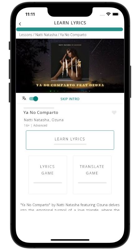 In addition to reading lyric translations, you can now learn Spanish with music and lyrics from your favorite artists.
