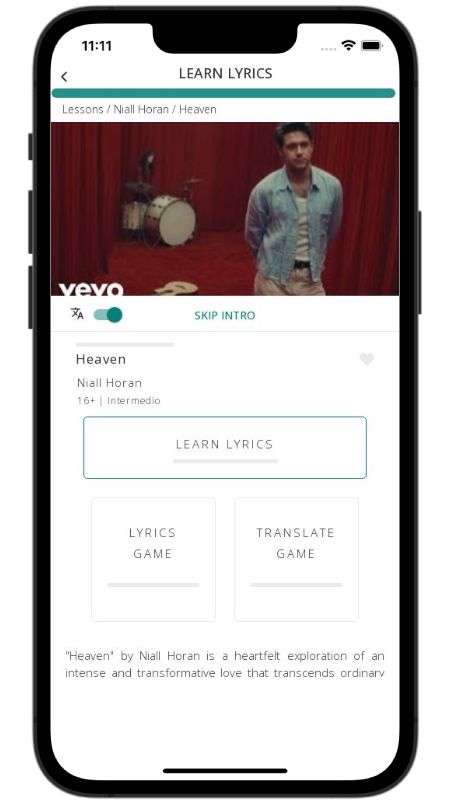 In addition to reading lyric translations, you can now learn English with music and lyrics from your favorite artists.