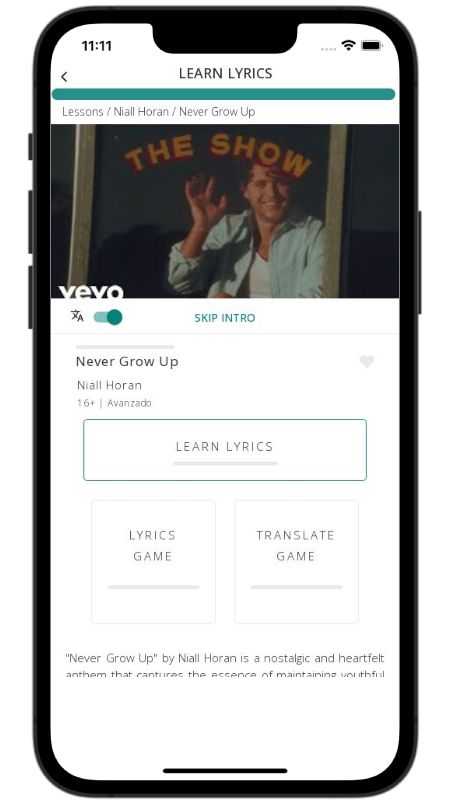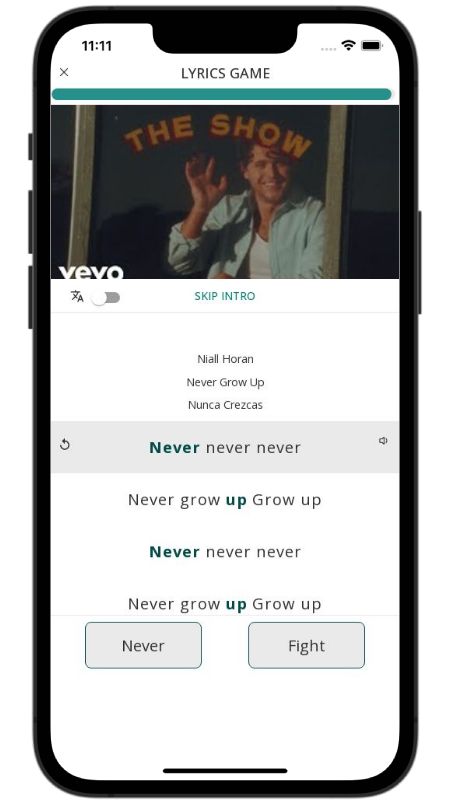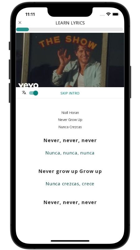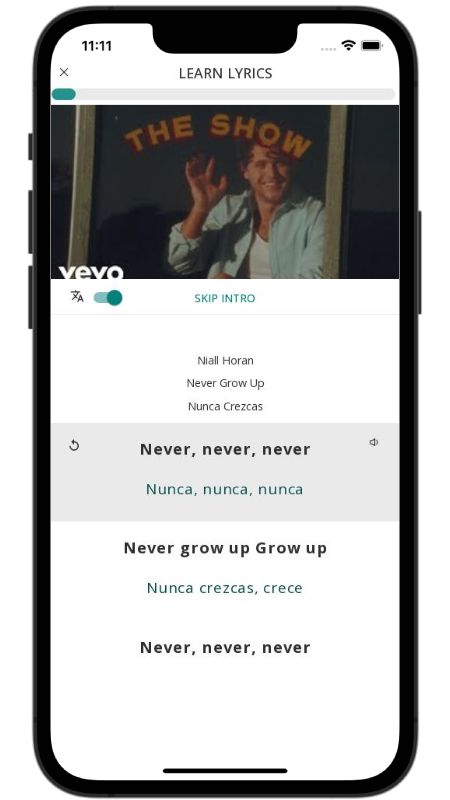 In addition to reading lyric translations, you can now learn English with music and lyrics from your favorite artists.