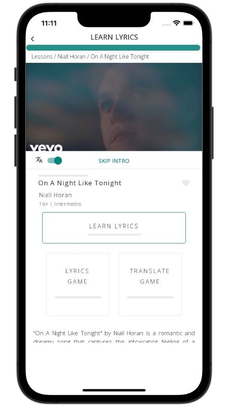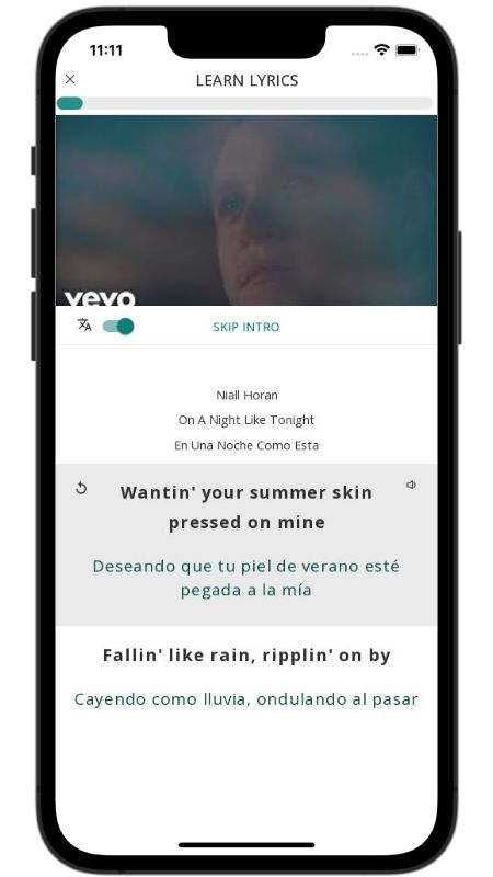 In addition to reading lyric translations, you can now learn English with music and lyrics from your favorite artists.