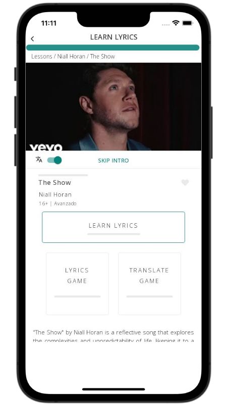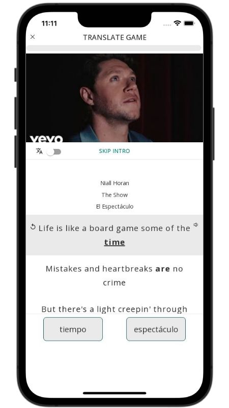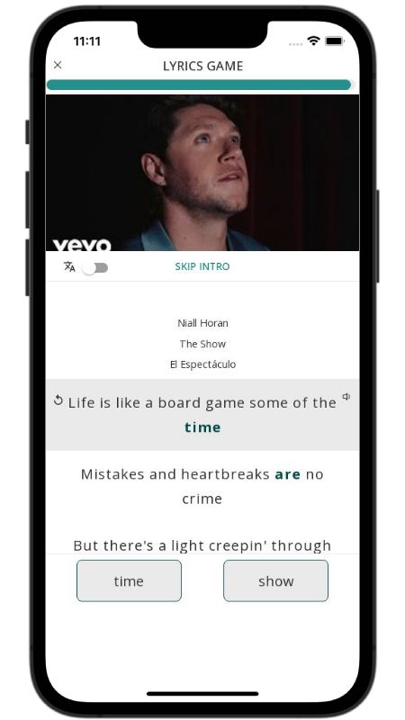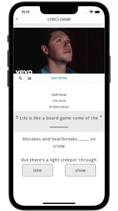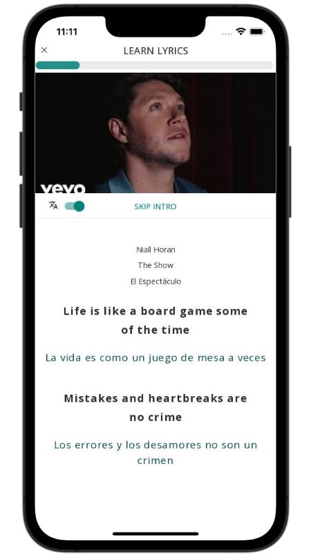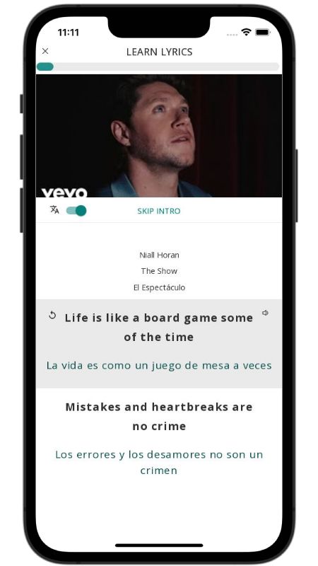 In addition to reading lyric translations, you can now learn English with music and lyrics from your favorite artists.