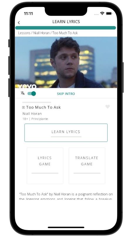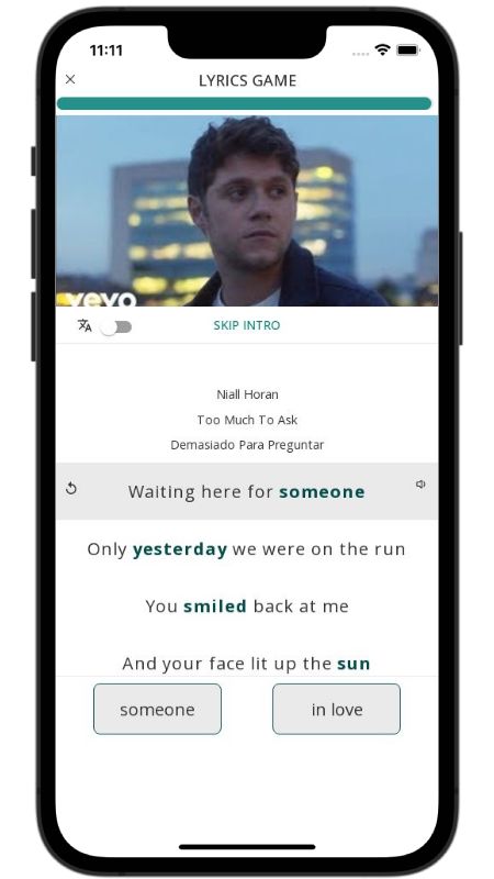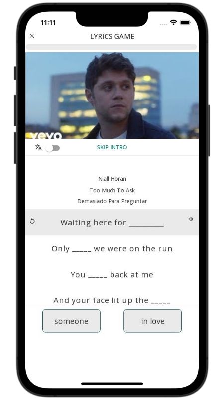 In addition to reading lyric translations, you can now learn English with music and lyrics from your favorite artists.