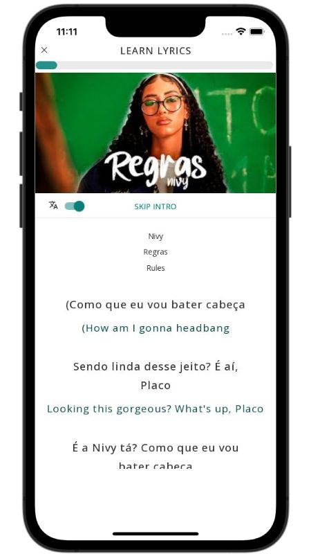 In addition to reading lyric translations, you can now learn Portuguese with music and lyrics from your favorite artists.
