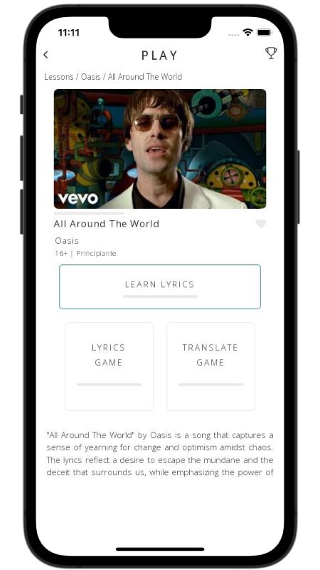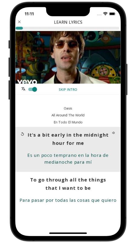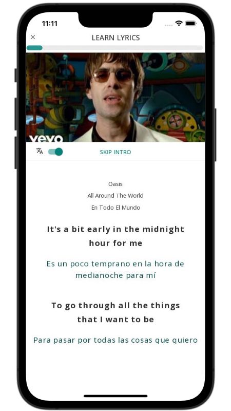 In addition to reading lyric translations, you can now learn English with music and lyrics from your favorite artists.