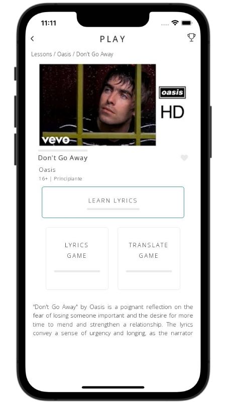 In addition to reading lyric translations, you can now learn English with music and lyrics from your favorite artists.