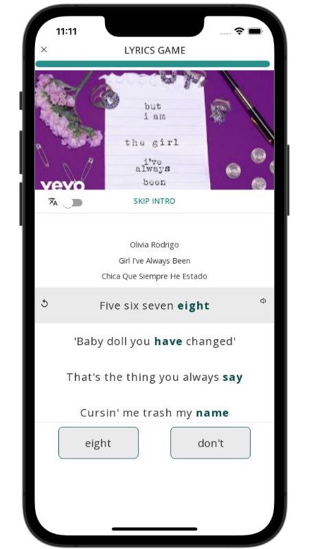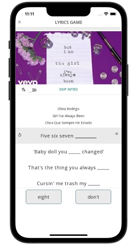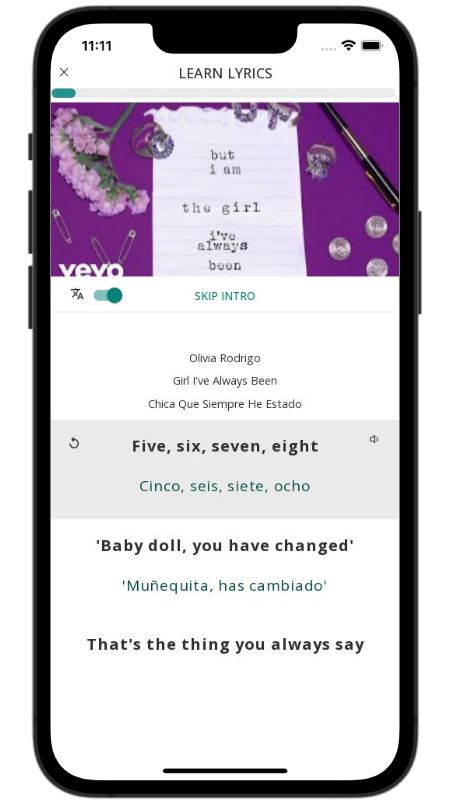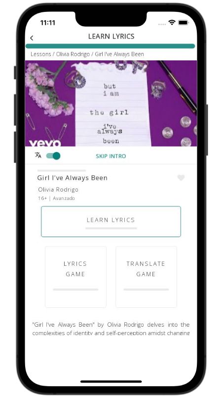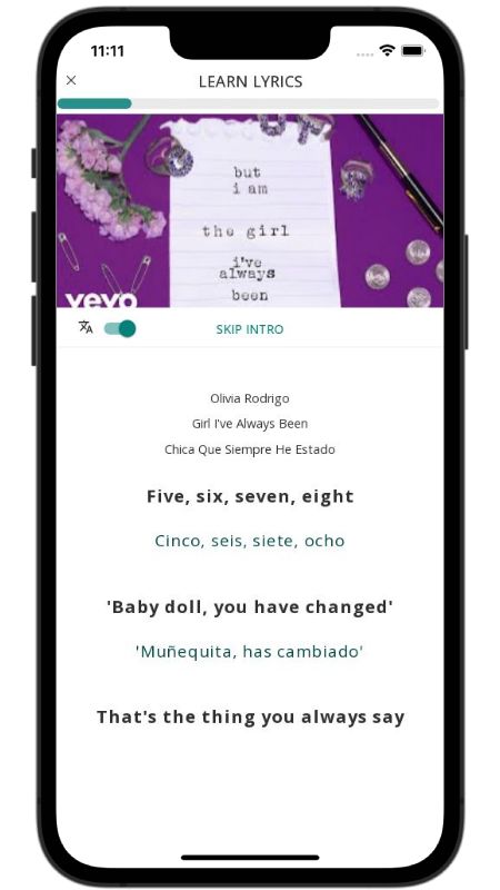 In addition to reading lyric translations, you can now learn English with music and lyrics from your favorite artists.