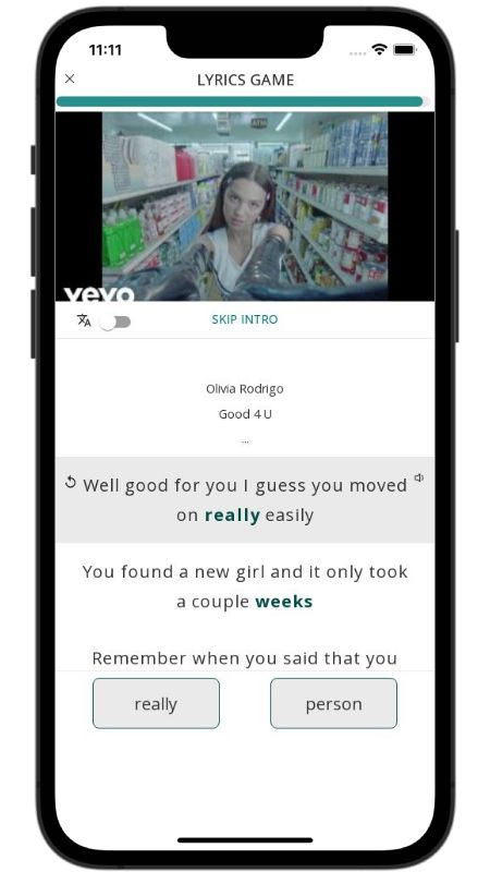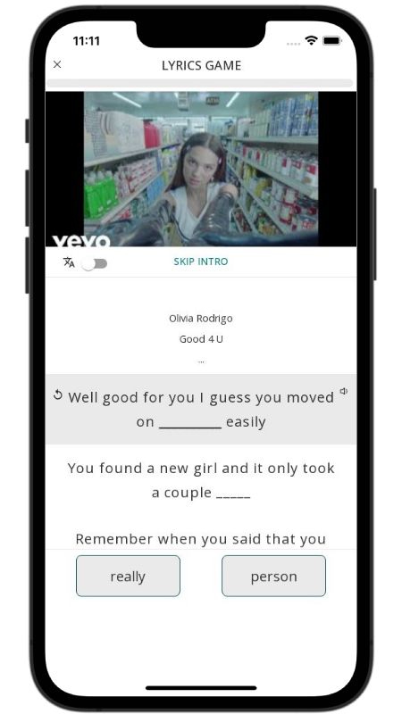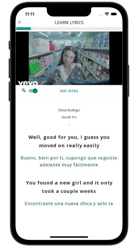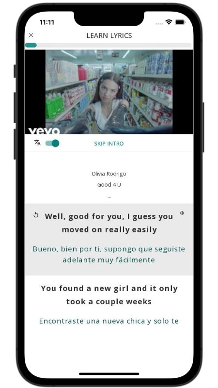 In addition to reading lyric translations, you can now learn English with music and lyrics from your favorite artists.