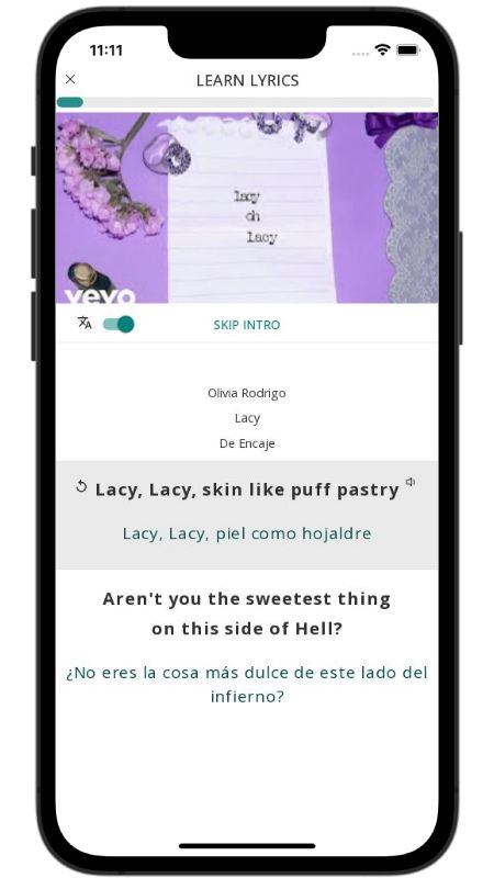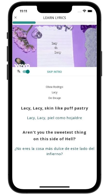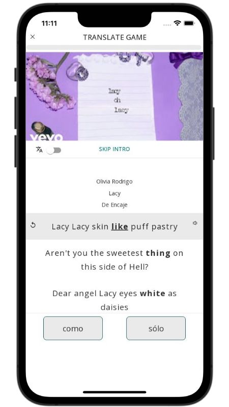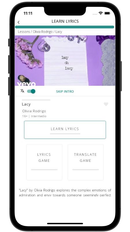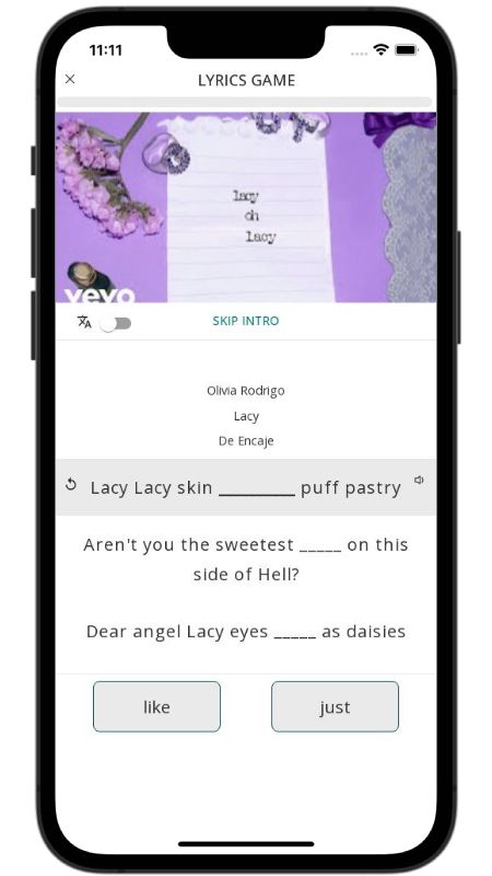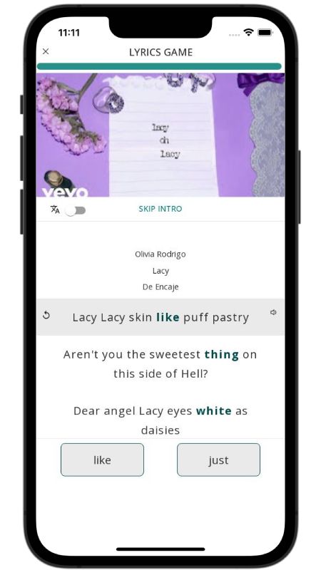 In addition to reading lyric translations, you can now learn English with music and lyrics from your favorite artists.