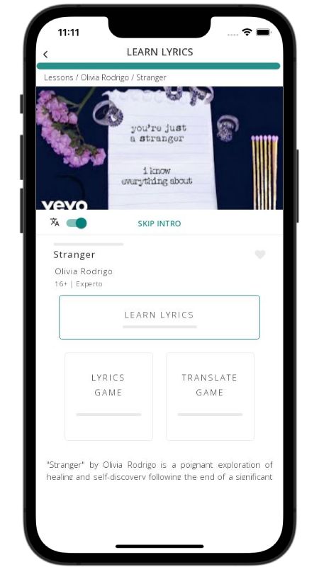 In addition to reading lyric translations, you can now learn English with music and lyrics from your favorite artists.