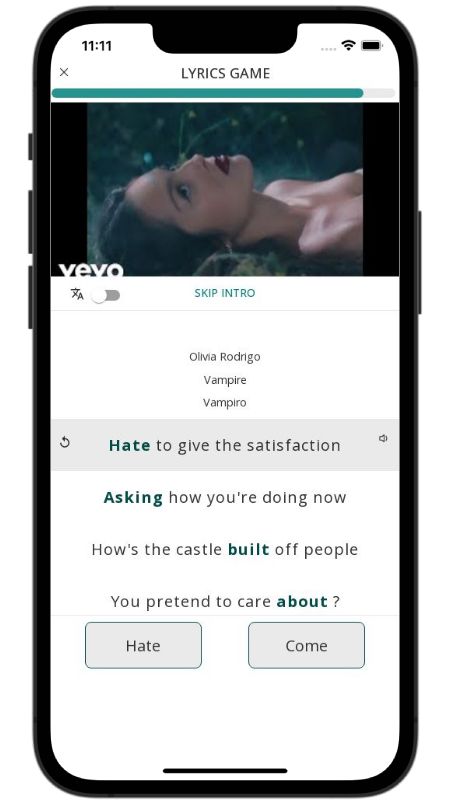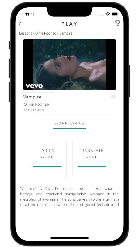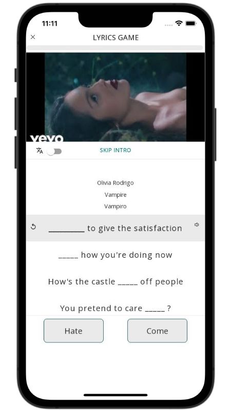 In addition to reading lyric translations, you can now learn English with music and lyrics from your favorite artists.