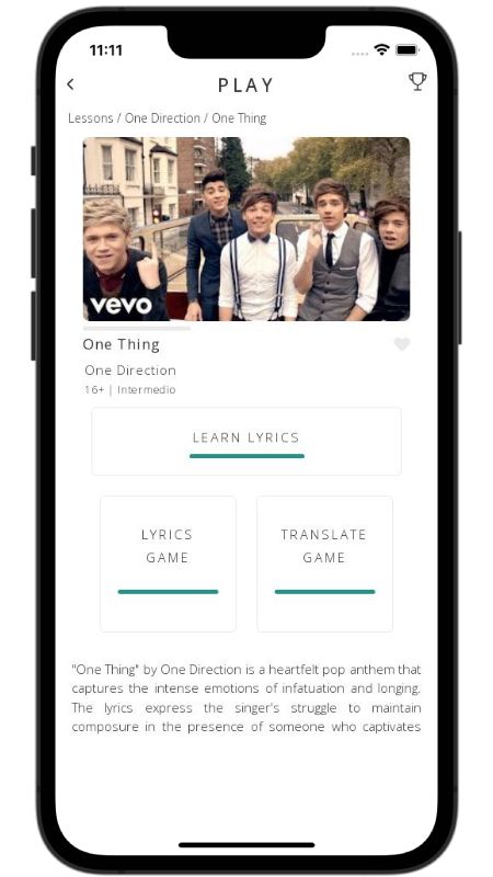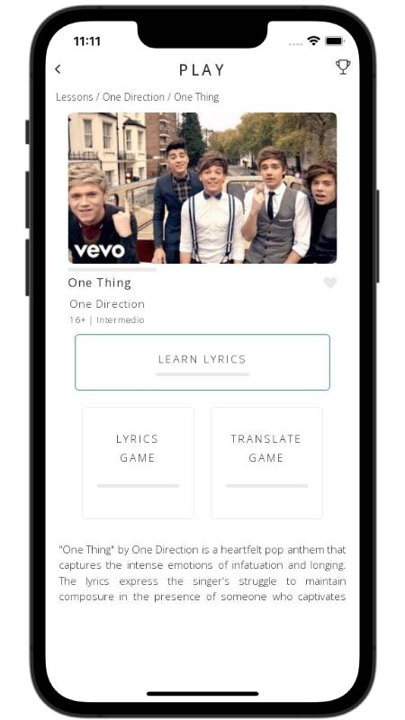 In addition to reading lyric translations, you can now learn English with music and lyrics from your favorite artists.