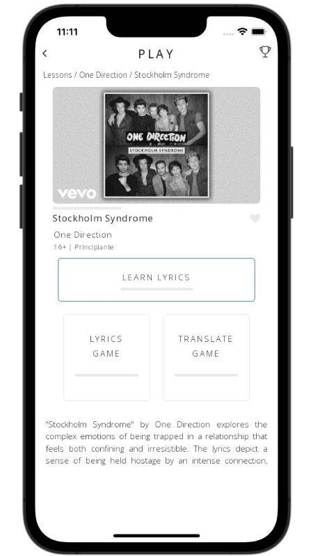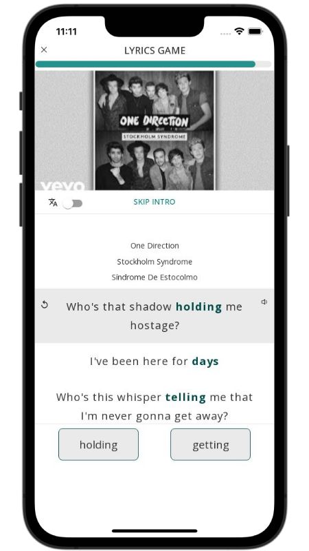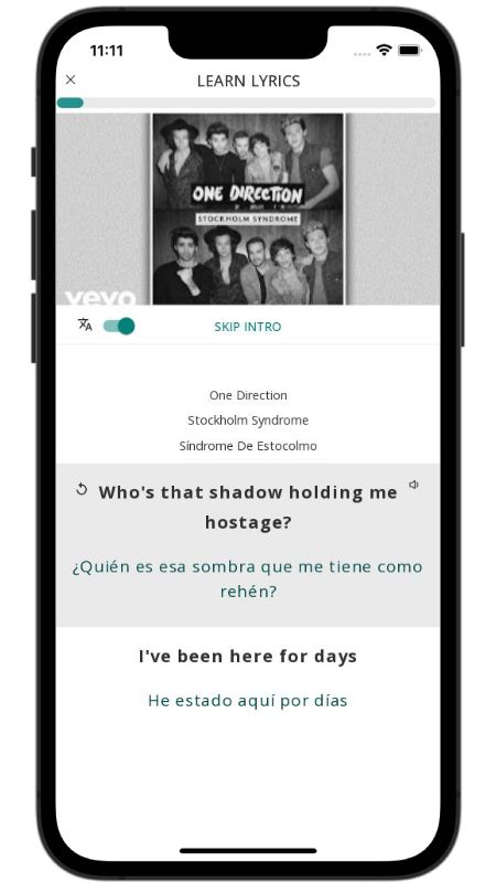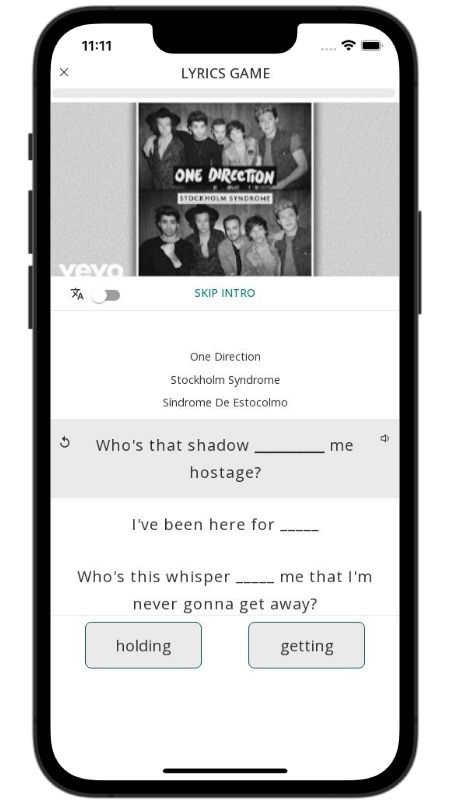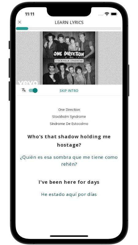 In addition to reading lyric translations, you can now learn English with music and lyrics from your favorite artists.