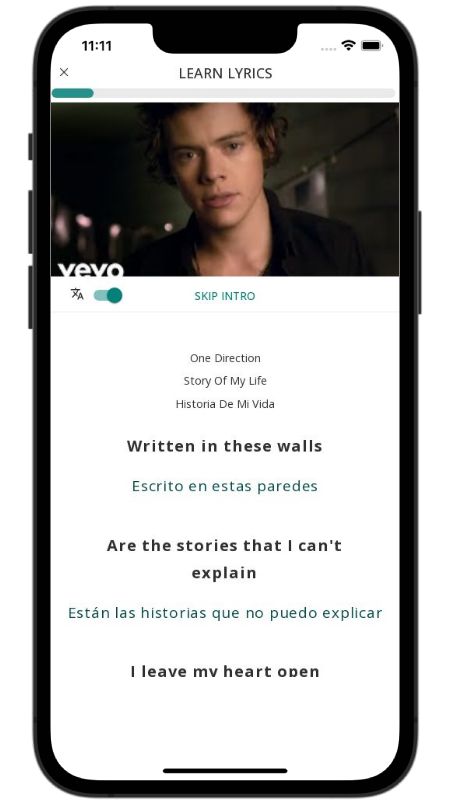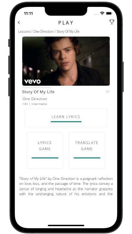 In addition to reading lyric translations, you can now learn English with music and lyrics from your favorite artists.