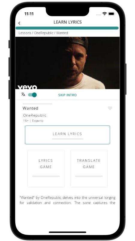 In addition to reading lyric translations, you can now learn English with music and lyrics from your favorite artists.
